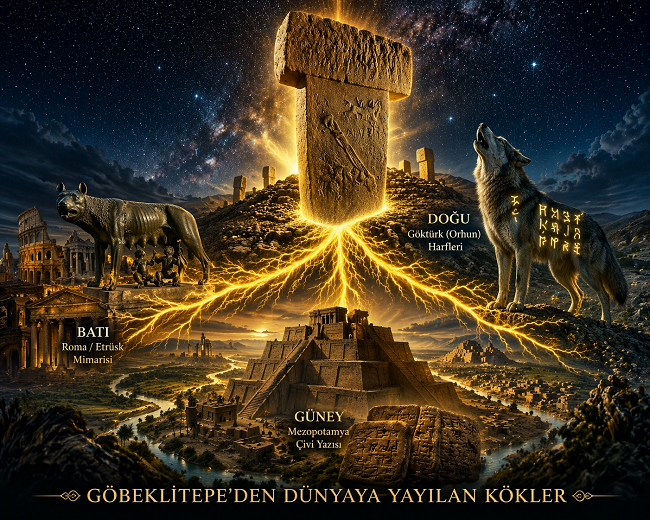 Göbeklitepe bir "dinleme tesisi" veya uzaylı üssü değildir. Göbeklitepe; Buzul Çağı'nı atlatmayı başaran yüksek bilincin (Türk Atalarının) doğadaki kaosu "Töre" ile nizamladığı İlk Kozmik Üniversitedir. Burada kodlanan "Damgalar" ve "Kök Heceler", binlerce yıl içinde üç ana koldan dünyaya yayılmıştır.