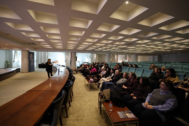 Eğitim programı kapsamında bütün kadınlara ulaşmayı hedeflediklerini aktaran Psikolog Burçin Çoltu; “Ocak ayı Rahim Ağzı Kanseri Farkındalık Ayı olduğu için biz 30 ilçede bu eğitimleri düzenledik. Bütün kadınlara ulaşabilme hedefimiz vardı bu eğitimlerde. Ben hastalığın psikososyal boyutuna değindim. Çünkü bedenimizi ilgilendiren bir şey duygularımızı, sosyal çevremizi de ilgilendiriyor. Dolayısıyla biz bu tanıyı aldığımızda duygularımız neler, ilk tepkimiz neler oluyor, bu tepkiler karşısında nasıl davranmamız gerekiyor konularını ele aldık. Bu hastalığın evreleri çok önemli. Erken tanılar tüm kanser türlerinde olduğu gibi büyük önem taşıyor. Bu yüzden bu eğitimleri önemsemek, katılmak ve bu farkındalığı kazanmak çok değerli” dedi.