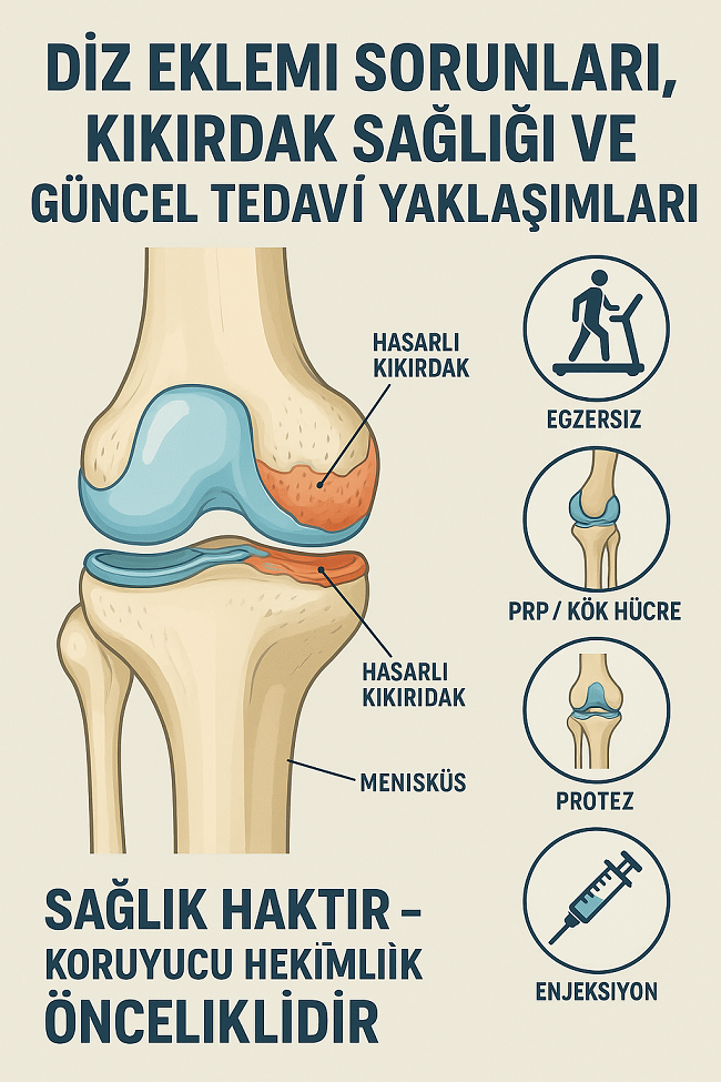 Kolajen takviyeleri, PRP ve kök hücre uygulamaları hakkında bilgi veren hocamız, özellikle kemik iliğinden alınan hücrelerin daha etkili olduğunu, yağdan elde edilen uygulamaların ise halen tartışmalı olduğunu belirtti. 9 Eylül Üniversitesi’nde bu konuda yürütülen kıkırdak üretimi ve doku mühendisliği çalışmalarıyla büyük umut vadeden sonuçlara ulaşılmış. Ancak bu bilimsel projelerin de desteklenmediğini, bazı laboratuvarların kapatıldığını üzülerek dile getirdi. Yazık ki ne yazık!..