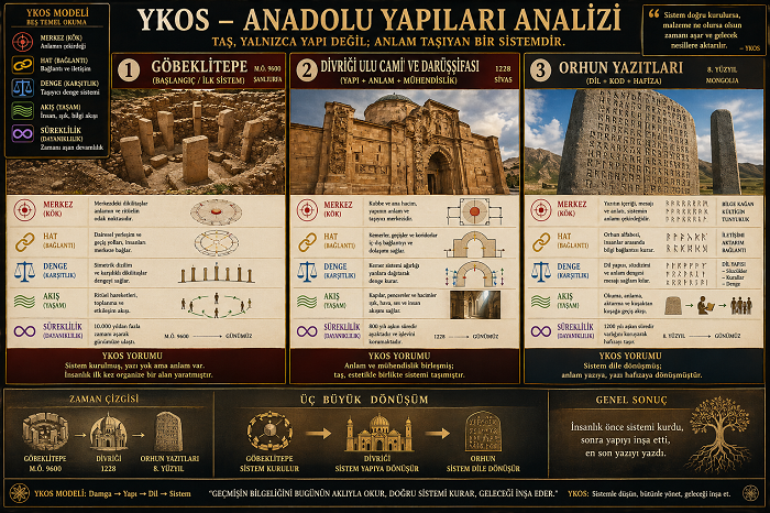 1. "Tapınak" Değil, Veri Merkezi ve Akıl Yuvası Sığ tarih anlayışı, Göbeklitepe’den Tripolis’e kadar uzanan devasa yapıları "ilkel inanç merkezleri" olarak pazarlamaktadır. Oysa YKOS (Yaşar Kaba Okuma Sistemi) ile bu yapılara baktığımızda gördüğümüz şey; astronomiden sosyal organizasyona, sismik mühendislikten matematiksel kodlamaya kadar uzanan birer **"Taş Kütüphane"**dir. Bu taşlar, sığ bakışın iddia ettiği gibi "kurban kesilen" yerler değil; bilginin, geleceksizleşmeye karşı "taş üzerine kodlandığı" kadim üniversitelerdir.